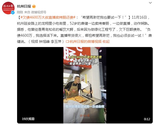 他说,罗永浩靠做直播还了6个亿的债,自己虽然没法和老罗比,但他相信只要努力,一定会有回报。