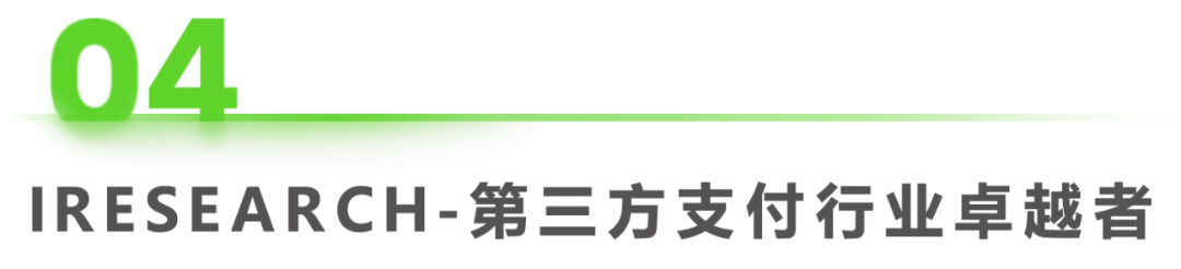 iResearch–中国第三方支付行业卓越者由艾瑞咨询联合第三方支付行业内专家共同提名、评选,并确定最终入围者。