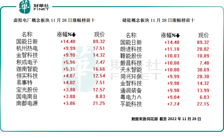 11月28日,虚拟电厂、储能板块概念股热度持续攀升。
