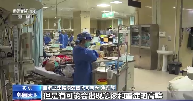国家卫生健康委医政司司长 焦雅辉:2022年12月中旬,全国发热门诊的就诊量进入了一个快速上升的阶段。到12月下旬和2023年元旦的时候,急诊量进入了一个高峰期,急诊高峰意味着重症救治的高峰也同步到来。从现在全国的情况来看,全国主要的城市,也就是直辖市、省会城市,包括一些计划单列市,这些中心城市正在渡过或者已经渡过感染的高峰。现在从这些大城市的情况来看,急诊和重症的高峰,尤其是急诊也出现了回落的迹象,重症救治是处在一个高位平台期。在春运之前,中小城市和农村地区实际上也已经迎来了感染的一个高峰。根据这个趋势来看,在春运期间有可能会迎来这些中小城市和农村地区急诊和重症的一个发病高峰。