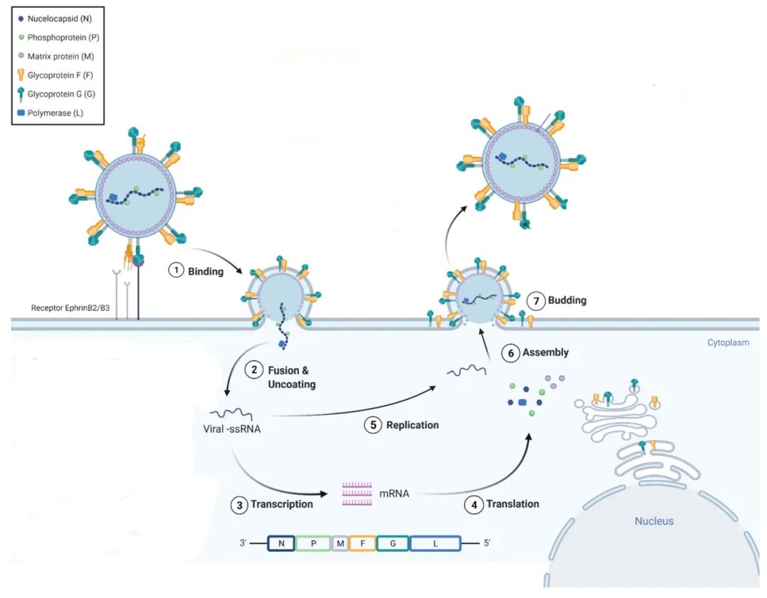 这种疾病的发展很迅速,可能在短时间引发严重的急性脑炎,表现出意识模糊、昏迷、嗜睡等症状,还可能有生命危险。到1999年中期,已有超过265人因为这种感染而出现了脑炎,其中105人不幸殒命。一些人员在调查后发现在马来半岛,猪出现症状大概率是因为吃下被狐蝠污染的水果,随后感染很快由猪传给了人。在与马来西亚毗邻的新加坡,也有11人出现了相似的症状,其中1人死亡。