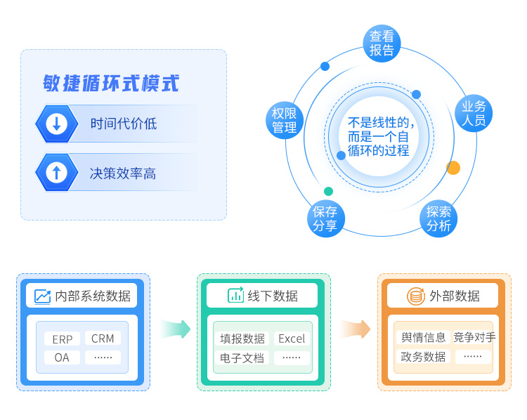 以此,提升BI产品的敏捷性,缩短部署和开发周期,任意需求的实现以天为单位,并通过循环模式不断提升支撑业务的精准性。
