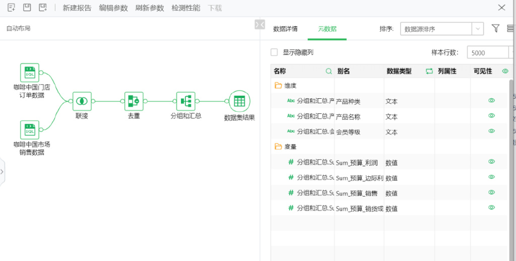 永洪BI提供可视化流程数据建模能力,可快速完成表和字段的转义、异构数据源关联、多粒度表达式、数据脱敏、异常数据过滤、维度度量扩展、缺失值填充、去重、拆分列、范围分组、格式转化、自循环列等一系列操作,提高数据质量。业务人员通过简单的点击、拖拽等动作,即可完成制作报表、数据分析和洞察,实现数据分析全员化。