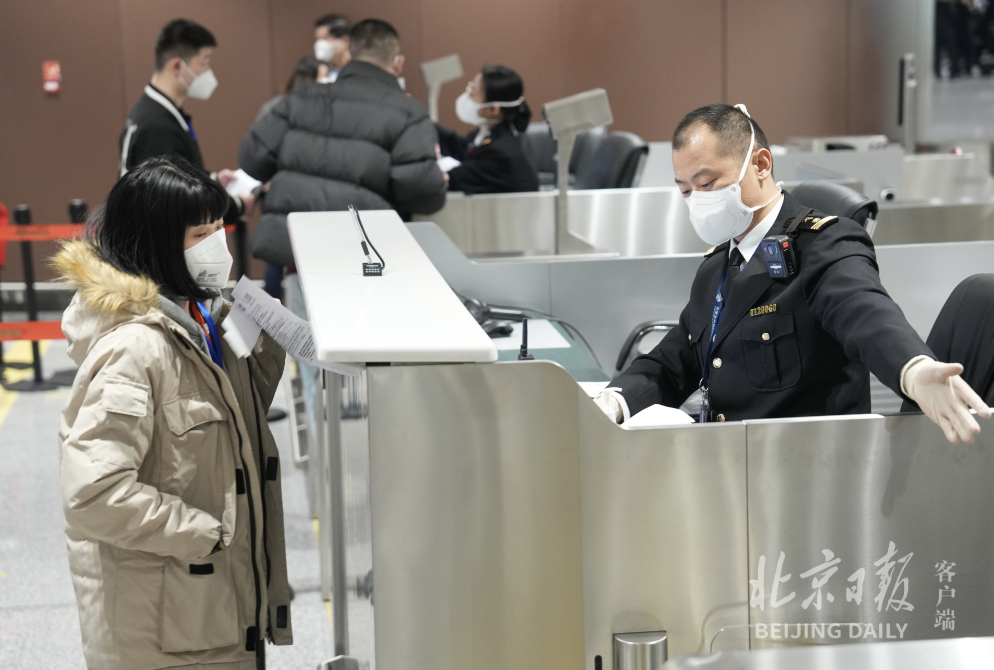 记者注意到,在国际和地区出发的入口处,设置了海关卫生检疫通道。进入之后,旅客们陆续经过安检,从空中天桥跨越国内出发层,到达边检查验区。