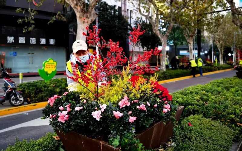 新春佳节将至,申城街头和公园绿地的花卉景观焕然一新,营造出浓郁的年味。
