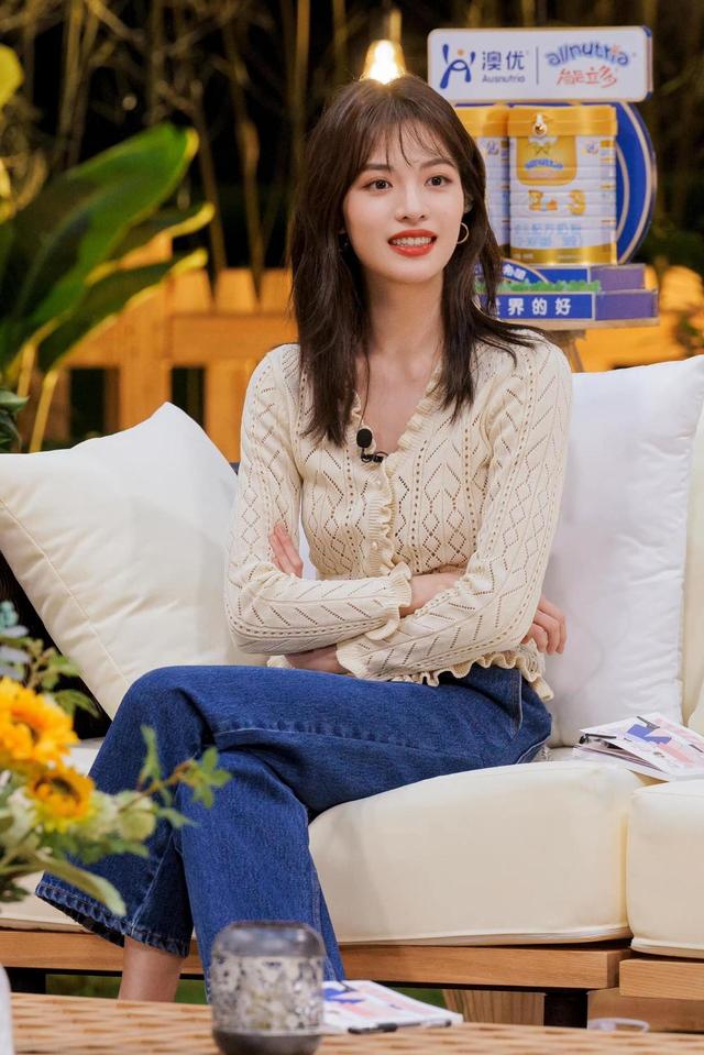 针织衫搭配牛仔裤还是比较简单的,这一组搭配日常也会觉得很容易驾驭。钟楚曦气质突出,米色针织衫搭配牛仔裤,简单随意,更重要的是她的身材比例很不错,这种搭配也可以体现她的身材优势。