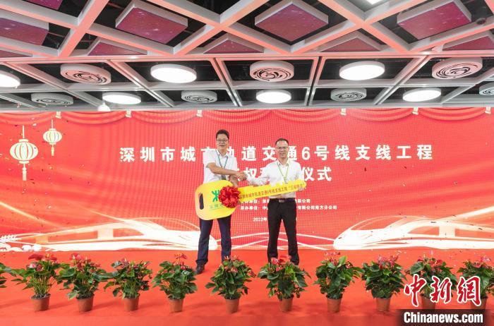 图为地铁6号线支线三权移交现场。 深圳地铁 供图这两条线路开通运营后,深圳地铁运营里程将突破500公里,达到530公里的里程新高度,是完善深圳轨道交通线网建设、构建多层次城市交通网络体系迈出的重要一步。(完)