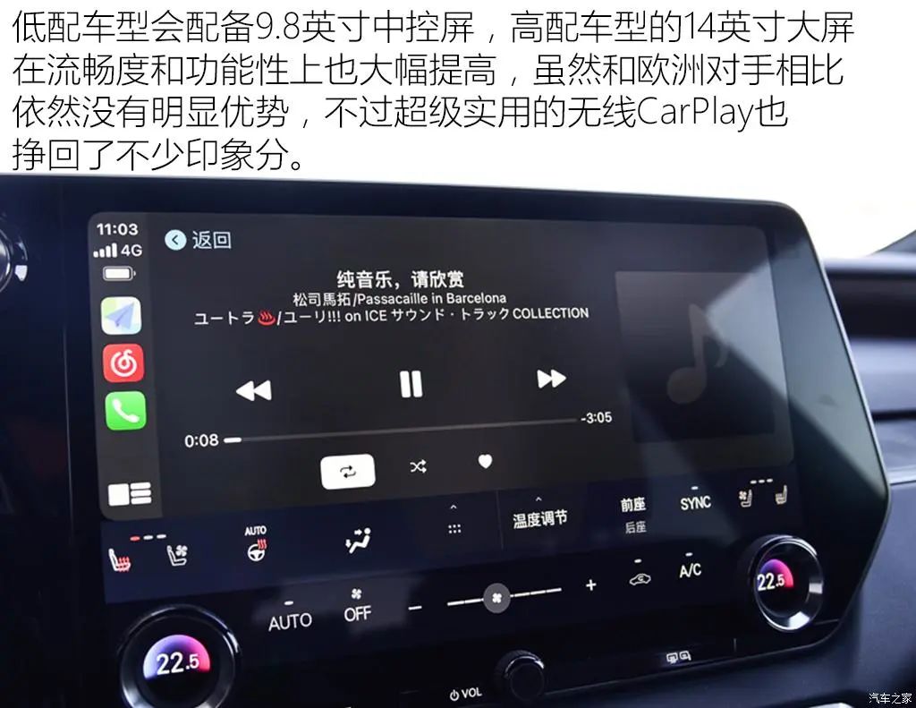 老实说,但说工艺美感与豪华气氛显然是上代车型更胜一筹,而新款车型的中控大屏则更像是2022年与对手平起平坐的入场券。对于我这种老派用户来说,屏幕够清晰、够顺手,有无线CarPlay就足够了。