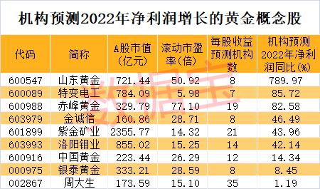 机构预测净利润增速最高的是山东黄金,去年净利润增速有望达到7.9倍。据2022年半年报,山东黄金所属玲珑金矿、焦家金矿、三山岛金矿、新城金矿在全国相继实现累计黄金产量过百吨。