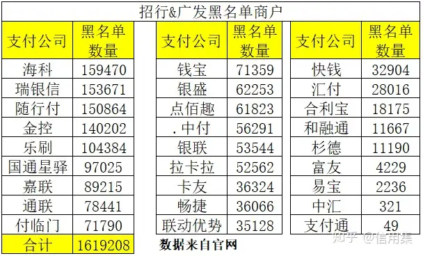 这是招行和广发官网乐刷官网的黑名单数量,总共160万个,这只是其中两家银行而已,事实上,每家银行都有商户黑名单,还不带重样的,全中国到底有多少个黑名单商户?数量大得惊人。