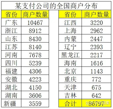 这些商户分布在全国21个省份,广东当仁不乐刷官网让地拔得头筹,说明广东仔是刷卡狂魔;吉林就比较悲催了,只有642个商户,说明该支付公司在吉林的实力不咋地。