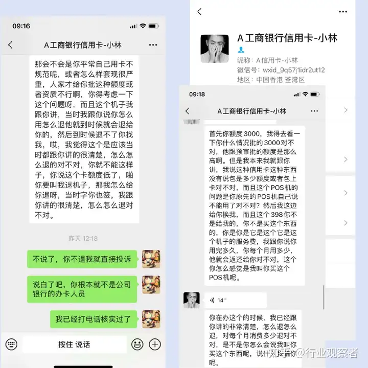 乐刷官网我之前用得什么信用卡,多少额度之类的,一顿操作后,就说办理的是工商信用卡,额度至少5万以上,虽后又以办理高额度信用卡为由说需要办理一个poss机(理由是你要经常刷卡套现,让银行赚到钱才会给高额度卡啊)乐刷官网,这个poss机需要398的押金,需要刷满6个月,每个月需要刷满3000元才会退还给我,当时我以为是工商银行的人员并没有做怀疑(他当时也介绍自己说是银行外部的外包开卡人员,事后想想也是大意,并没有看他乐刷官网乐刷官网乐刷官网ss机钱,还说自己并没有保证下多少额度的信用卡的,也从来没说自己是工商银行办理信用卡的人员,我信他个鬼,如果你不是说办理高额度工商信用卡的人,我干嘛要办理你这个poss机,我没有poss机的需求,如果乐刷官网乐刷官网人员恶意宣传欺骗消费者!